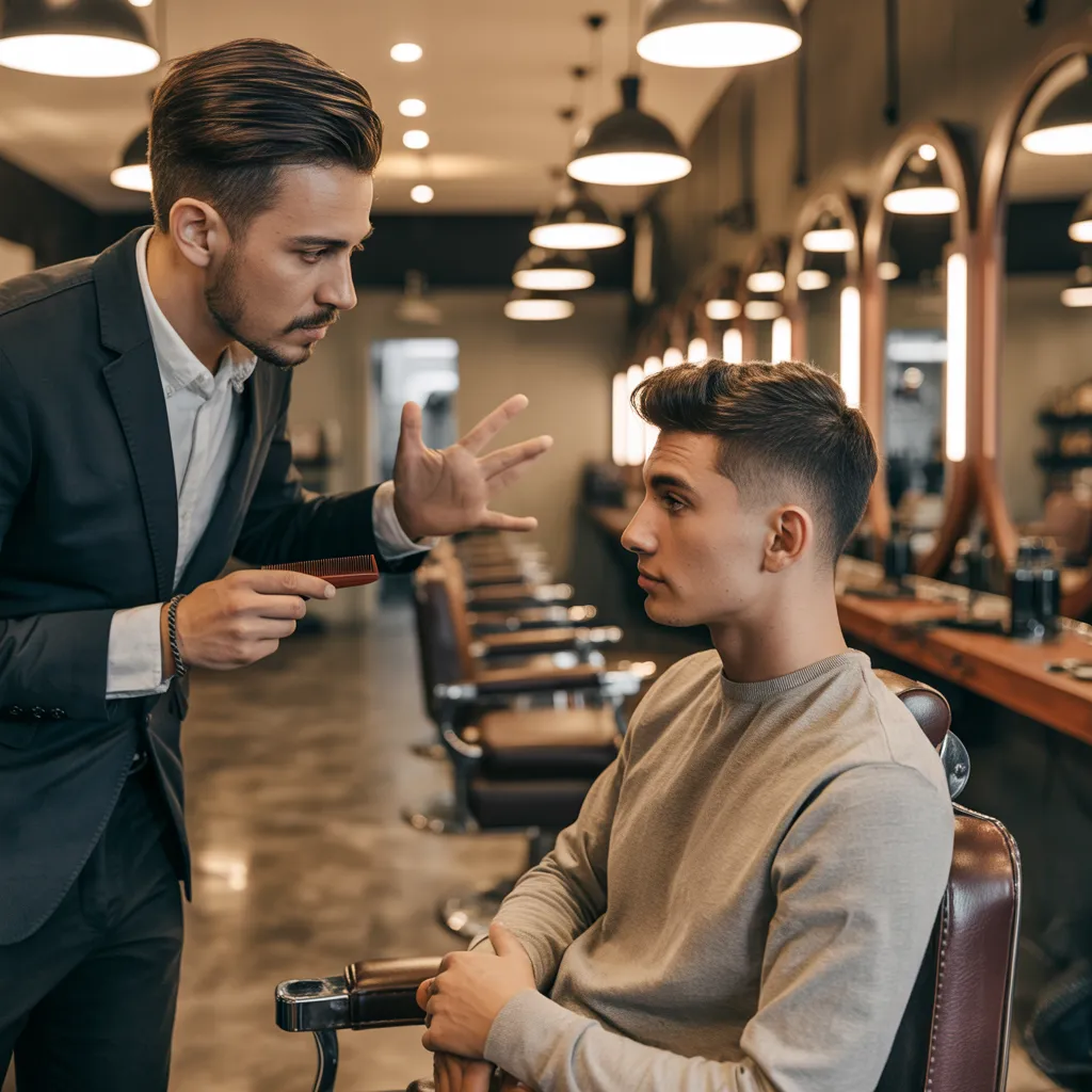 While receiving service, keeping a calm attitude promotes a pleasant atmosphere. It is essential to avoid distractions, such as frequent phone checking, which can interfere with the barber's concentration. Customers are advised to remain seated and avoid conversation while the barber is performing the haircut, promoting a seamless experience.